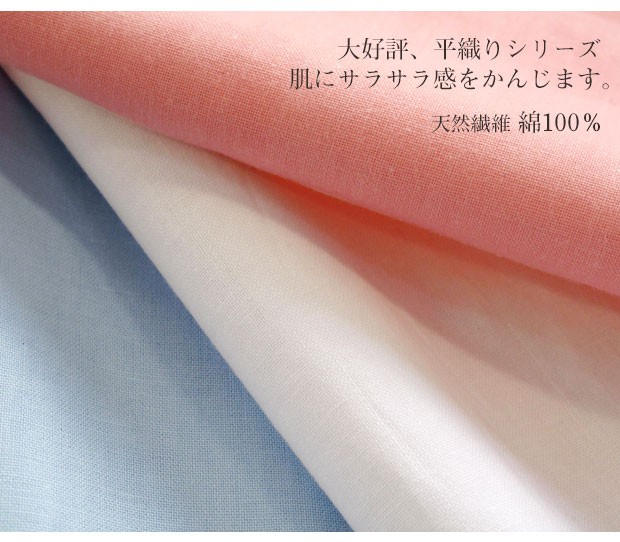 さらりとした肌触りがとっても心地よい、定番の平織りタイプです。 年間通してご使用できます。色はさわやかな「ピンク・ブルー・ホワイト」。水洗いにも強いので汚れを気にせずに、いつでも清潔さと快適さを保てます。洗い替え用に、お客様用に、何枚あっても重宝します。マチが30cmあり、裏側に全周ゴムが付いています。ベットにフイットしてずれることもありません。取り付けもワンタッチで楽にできます。
