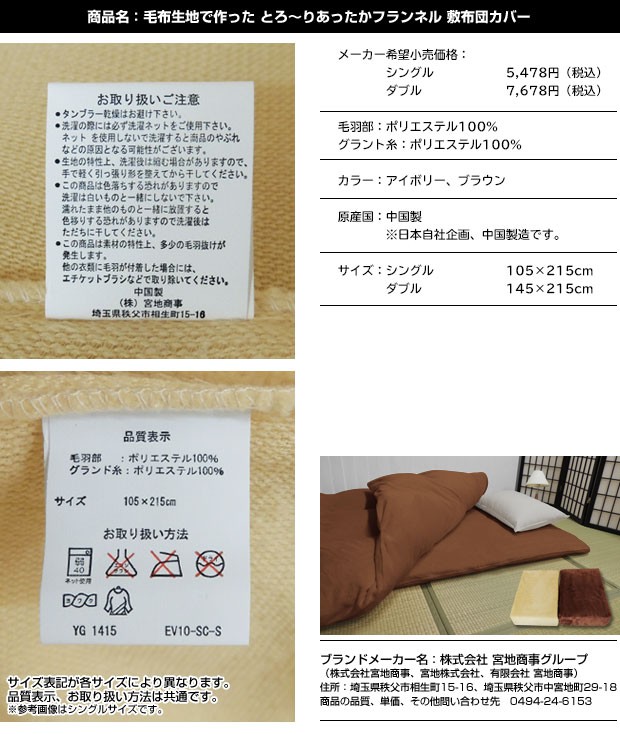商品名:毛布生地で作ったとろ〜りあったか 敷布団カバー