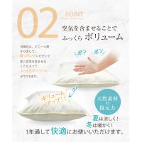 | 洗濯 | 洗濯不可。 どんな小さい穴でも羽が飛び出すことがありますので安全ピンなどでカバーを取り付けないでください。 万一、羽が出た場合は引き抜かずそのまま本体に押し戻してください。側生地に羽根の吹き出しを抑えるための加工(ダウンプルーフ加工)を施してありますが、枕には適当な通気が必要であり生地や縫い目から若干の吹き出しは避けられません。 |