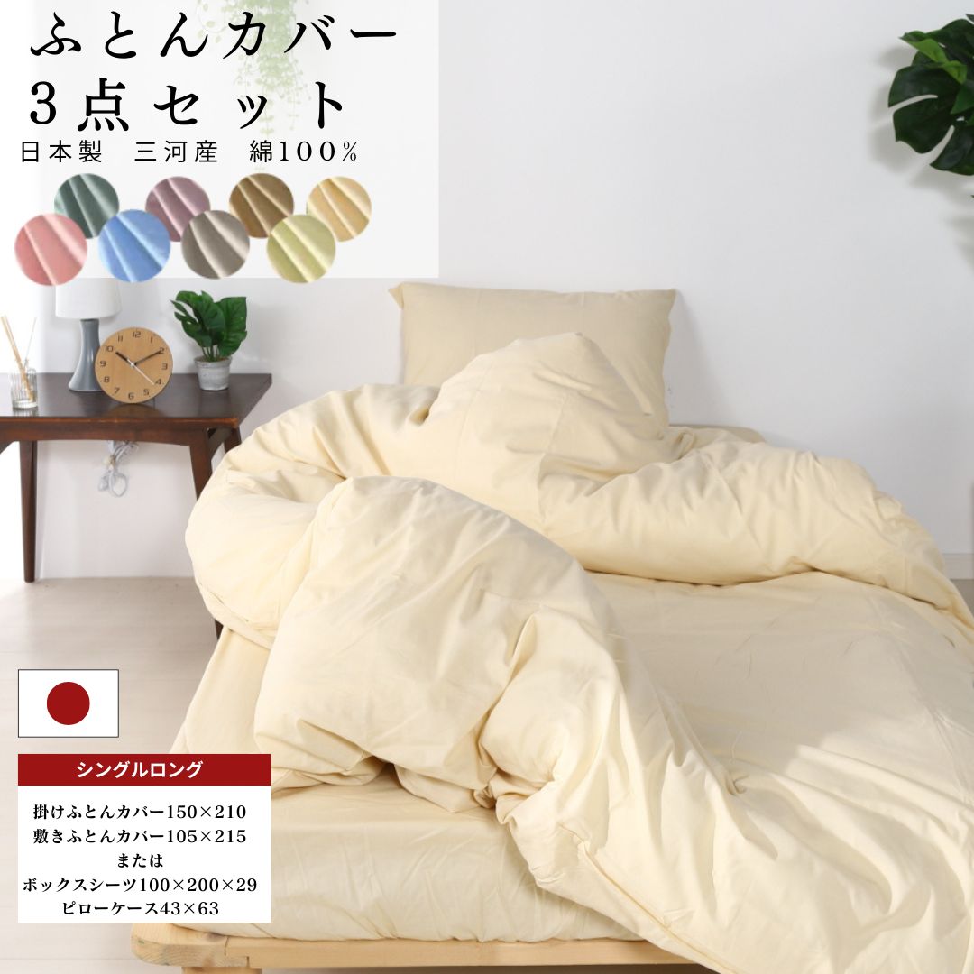 【安心の日本製】布団カバー3点セット シングルロング SL 掛布団カバー 敷布団カバー or ボックスシーツ 枕カバー 綿100% コットン 国産 三河産 洗濯可 新生活
