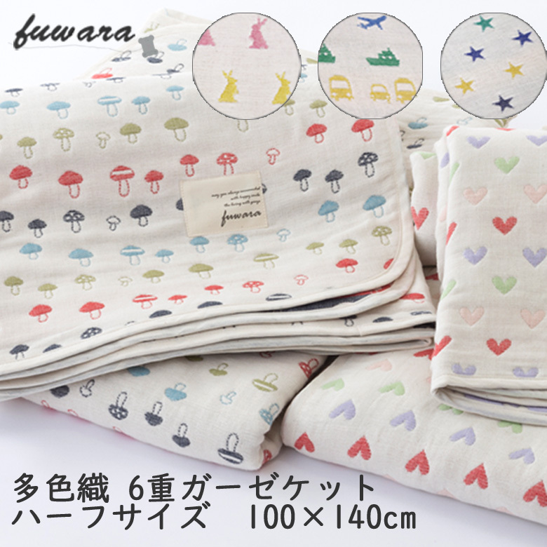 ガーゼケット 日本製 6重 ハーフサイズ ベビー 100×140cm fuwara 蒲郡産 赤ちゃん 子ども 肌掛け お昼寝 ベビーカー