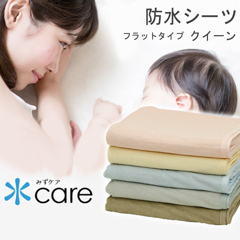| 【使用方法】 敷き布団やマットレスの上に重ねて、四隅をゴムで止めてご使用ください。 防水シーツに直接お休みいただくか、上からお好みのシーツ・カバー・敷きパッドを併用してもお使いいただけます。 ※ベッドマットレスでのご使用は【厚み18cmまで】を目安としておりますが、マットレスの種類(硬さ、角部分の形状、脚付きマットレスなど)により、厚みが18cm以下でもゴムが掛けられない、掛けにくい場合がございます。 マットレスの厚みがある場合は、防水ボックスシーツをオススメいたします 【水ケア防水シーツシリーズ】 当店の人気商品である防水シーツが2017年3月29日「水Care(みずケア)」シリーズとしてリニューアルしました。多くの防水シーツは「肌触りがゴワゴワする」「乾燥機が使えないからお手入れが大変」「蒸れてしまわないか?」と困っている声が多く聞かれました。 当店オリジナル 水ケア防水シーツはパイル地の柔らかさやカラーにもこだわり、きちんとした検査機関で透湿性(蒸れにくさ)、耐水性、ホルマリン試験を行うことで、お子様のトイレトレーニング、介護、ペットの粗相など幅広い用途でも、安心、安全、快適にお使いいただけます。 【洗濯機・乾燥機OK】 防水シーツは防水加工の都合上、乾燥機が使えないことが多いですが、当店オリジナル「水ケア防水シーツ」は乾燥機が使用できます。 防水シーツは時間や天気関係なく、いつも突然汚れてしまいます。だからこそすぐに清潔に出来るよう、洗濯機・乾燥機を使えるように開発しました。 ※家庭用乾燥機の使用を想定しております。60度を超える乾燥機は使用しないでください。また、乾燥機の使用で品質の劣化が早まりますので、基本は自然乾燥を推奨しております。 【蒸れにくい優れた透湿性】 透湿度と言うのは、蒸れにくさの数値、つまり「湿気を通す数値」です。 水ケア防水シーツは検査機関にて、シングルサイズで86g/hの湿気を通すことが証明されました。水は通さず湿気は通すことで、朝まで快適にお休みいただけます。 【安心のノンホルマリン】 厳しい安全基準をクリア。赤ちゃんにも使うからこそ、ママ・パパが安心して使えるように、有害なホルムアルデヒドを含まないことを公的検査機関で検査、証明しました。 | |
