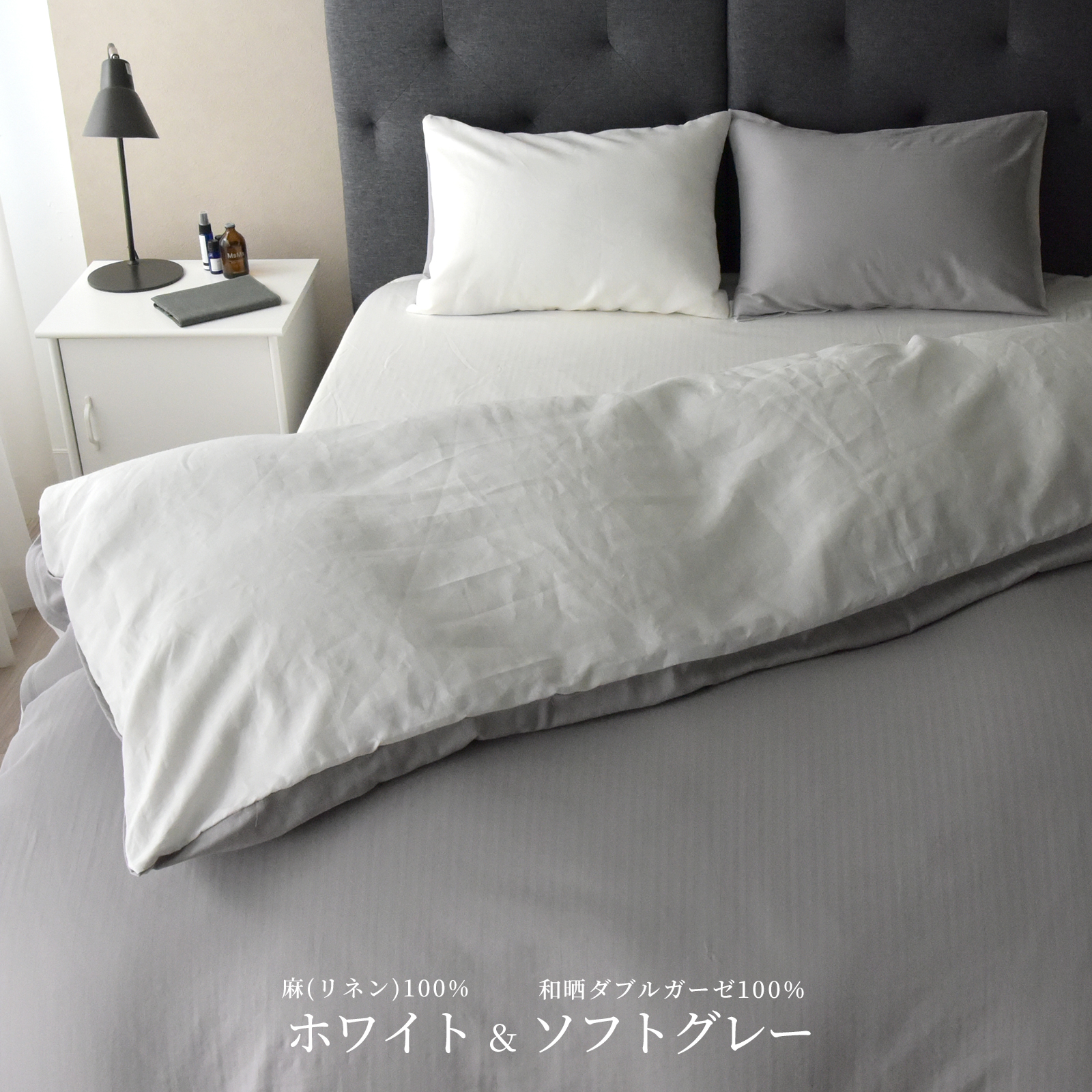 掛け布団カバー ダブル リネン 和晒し綿ダブルガーゼ 2種類の寝心地 日本製 190×210cm 綿100% 麻100% フレンチリネン 春 夏用 新生活 a.n.d