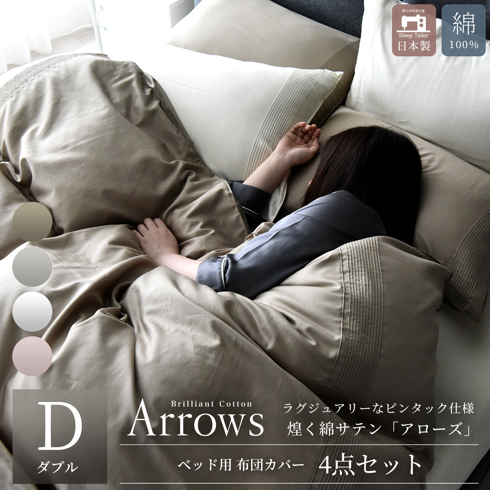 布団カバー 4点セット ダブル 布団カバーセット 高級綿100% 日本製 希少なピンタック サテン 高級ホテル仕様 冬 あったか 極艶 アローズ