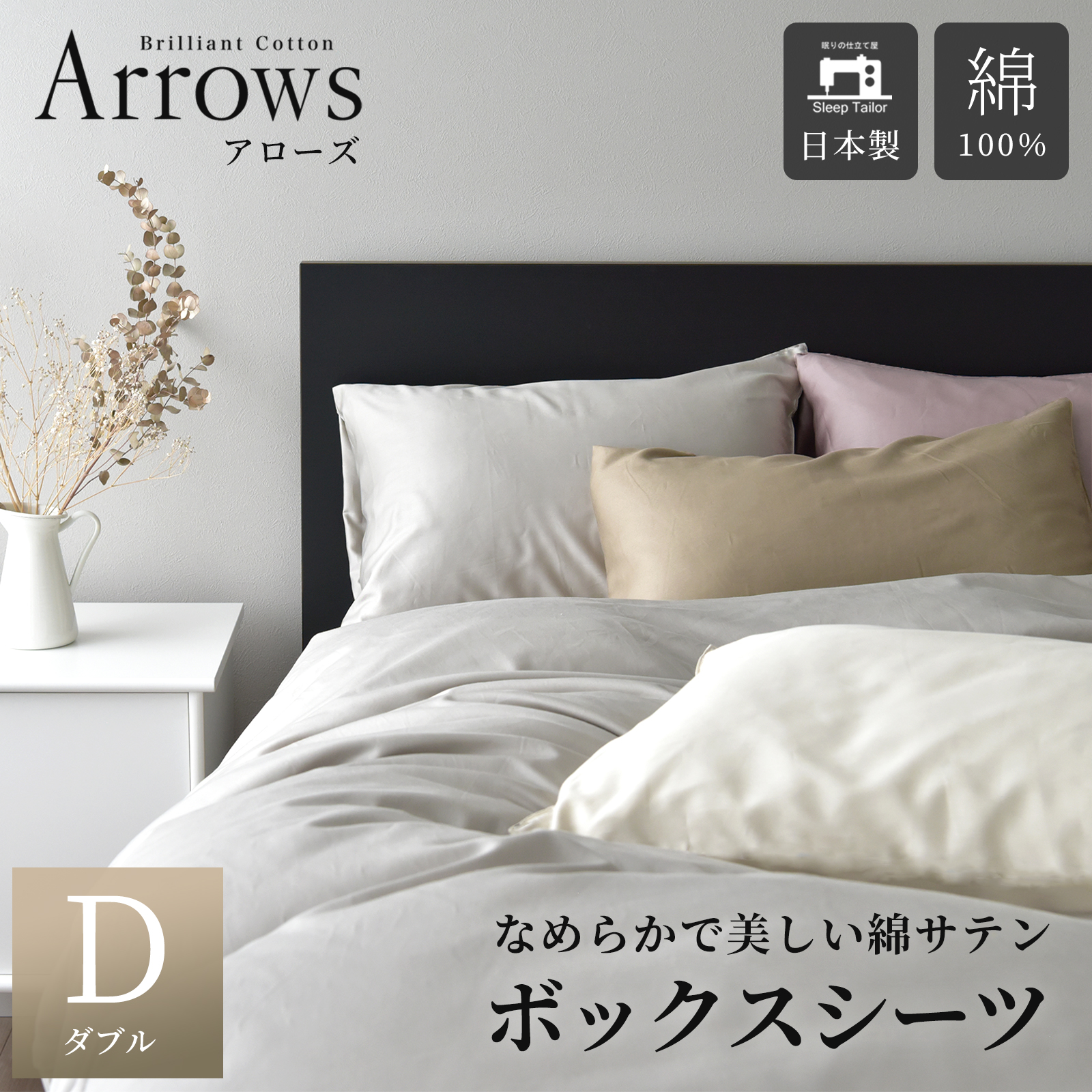 ボックスシーツ ダブル 高級綿100% 日本製 サテン シーツ 高級ホテル仕様 冬 あったか 極艶 ベッドカバー ベッドシーツ アローズ