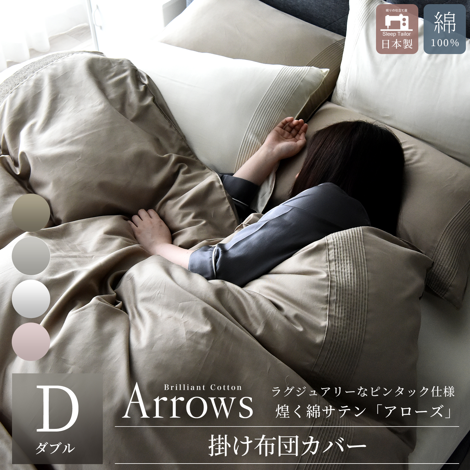 掛け布団カバー ダブル 高級綿100% 日本製 希少なピンタック サテン シーツ 高級ホテル仕様 冬 あったか 極艶 北欧 布団カバー アローズ