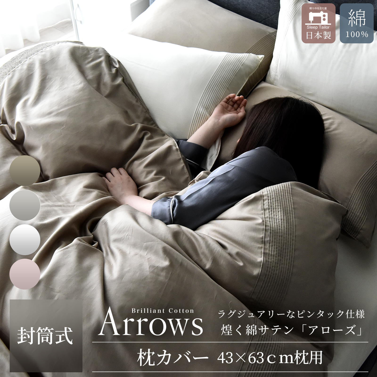 枕カバー 43×63cm 高級綿100% 日本製 希少なピンタック サテン シーツ 高級ホテル仕様 冬 あったか 極艶 ピロケース ピローケース アローズ