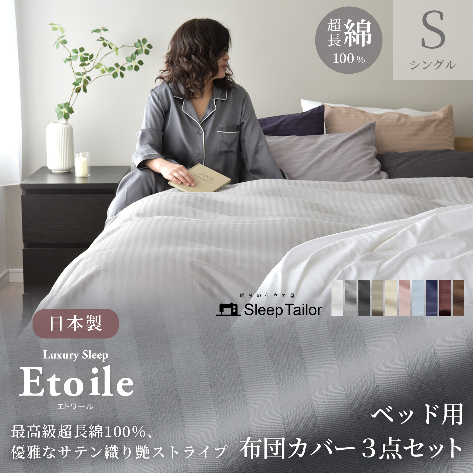 日本製 超長綿 布団カバーセット 3点セット シングル エトワール 高級ホテル仕様 綿100% サテン 極細糸 防ダニ 北欧 おしゃれ 冬 あったか