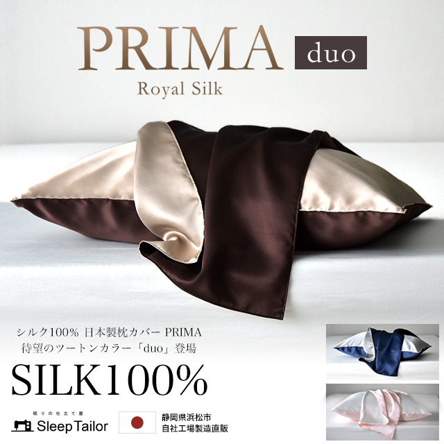 寝具専門店のシルク枕カバー リバーシブル 日本製 シルク100% 枕カバー 43×63cm 両面シルク ファスナー式 ピローケース まくらカバー プリマデュオ