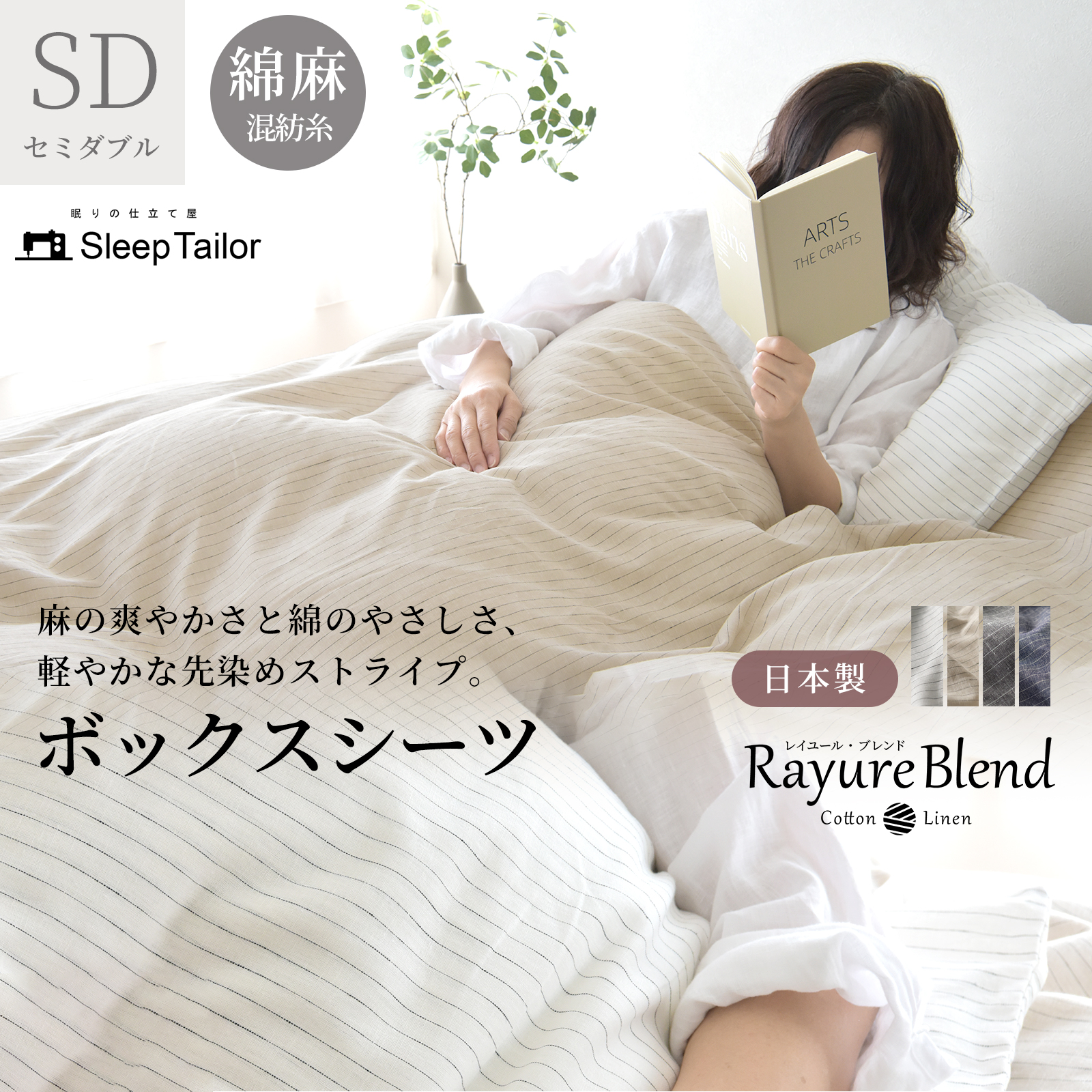 日本製 麻 綿 先染め ボックスシーツ マットレスカバー セミダブル ベッドシーツ リネン コットン シーツ 速乾 冬 あったか レイユールブレンド