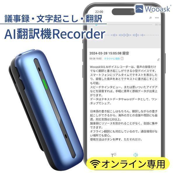 【2日間限定 15%OFFクーポン配布中】翻訳機 ボイスレコーダー 文字起こし 議事録 録音 Wooask S01 オンライン AI 121言語対応 翻訳