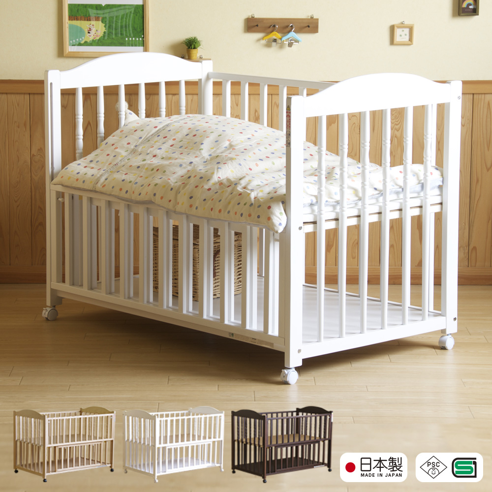 ・扉スライド式 ・4輪キャスター付 ・床板2段階調節可能(床から490、170mm) ・収納扉&棚付 ・組立式 ・耐荷重 ベッド:静止状態で60kg(生後24ヶ月以内の乳幼児が対象です。同時に二人で使用したり、腰掛けたり、ぶら下がったりしないでください。) 棚板:静止状態で10kg ・生産国:日本