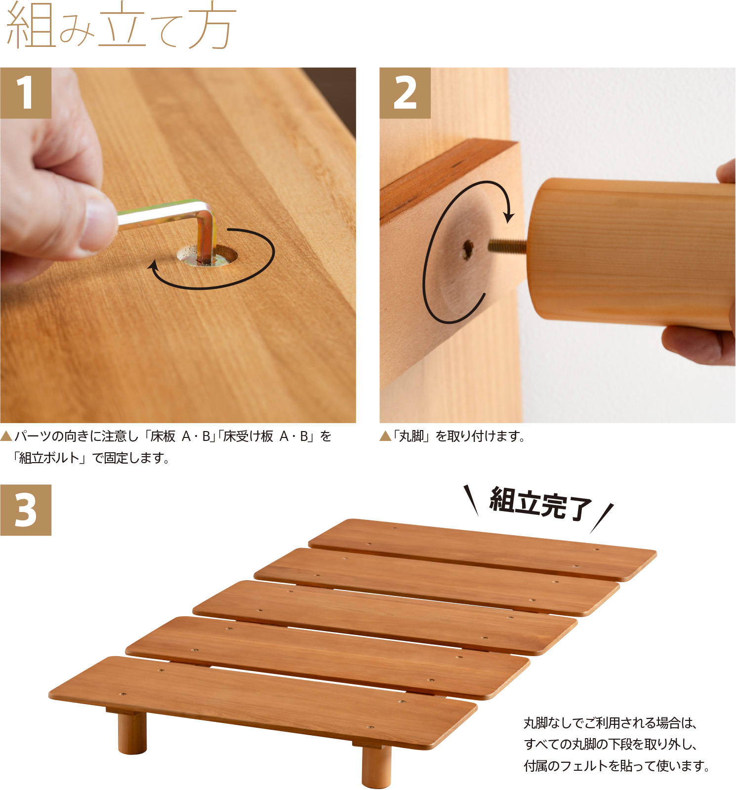 ・丸脚をはずしてすのこベッドとして使用も可能
