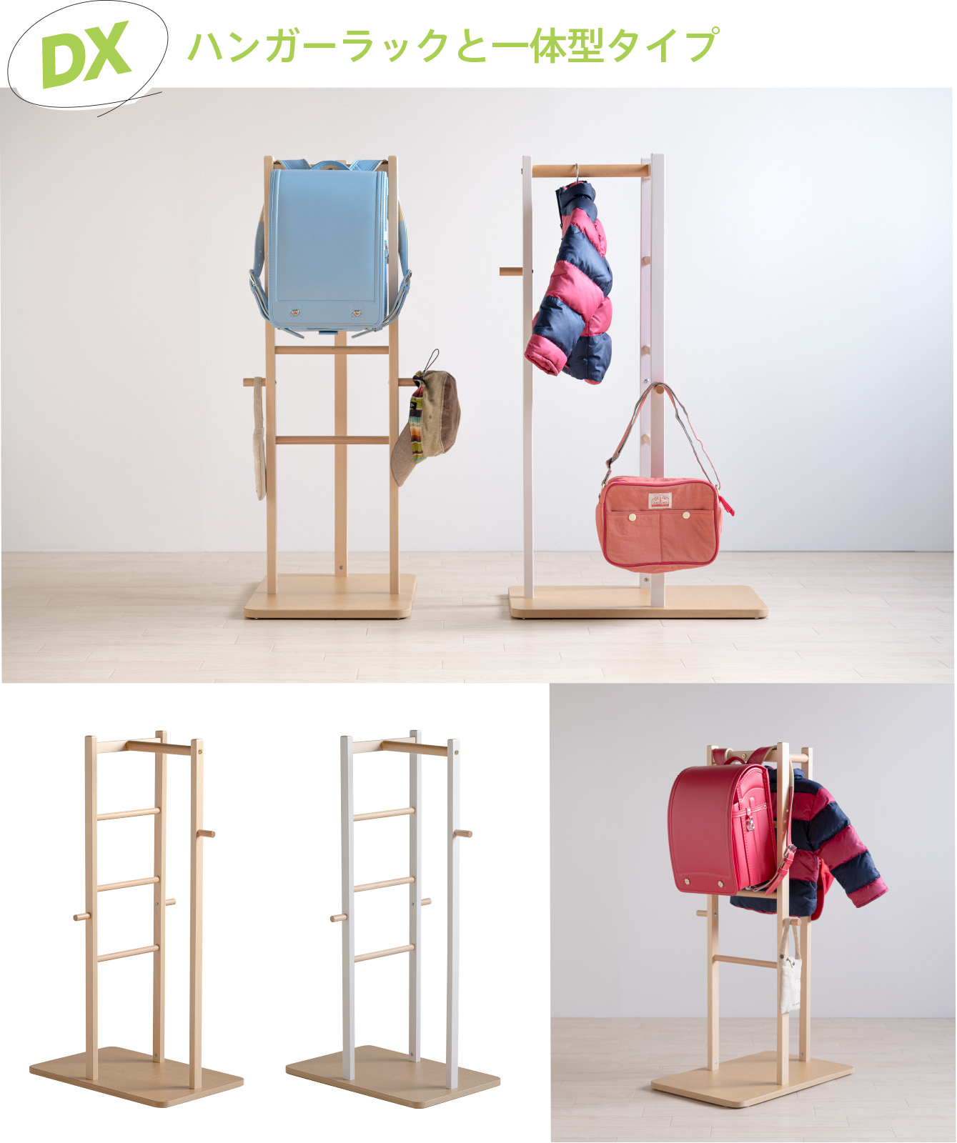 | 置き場所に困るランドセルをかけておくことができる木製『ランドセルラック』。ランドセルをかけたまま蓋の開け閉めをすることができます。スリーピーのベビーベッド工場で作られた天然木の日本製品です。塗料?接着剤などはベビーベッドと同じ『ホルムアルデヒド放散等級区分国内最高基準F☆☆☆☆』を取得した材料を使用しています。 台座とサイドフックを取り付けるだけで組み立て簡単なキッズ家具です。 ・生産国:日本 ・組み立て式 |
