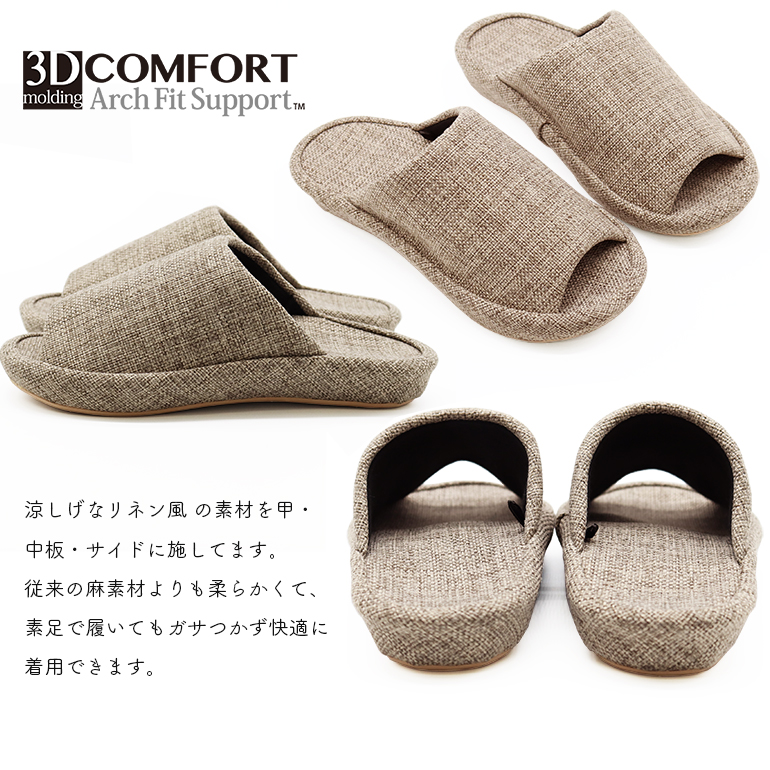 スリッパ ルームシューズ おしゃれ 室内履き 健康 レディース メンズ 秋冬 3Dコンフォート無地リネン風スリッパMLサイズ