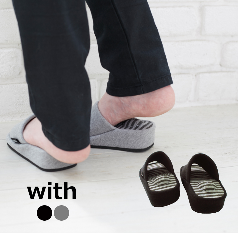 あなたの足にfitするスリッパシリーズwithウィズの美脚タイプスリッパです。ウィズ初のダイエット系スリッパ★自然につま先立ち姿勢になる短めスリッパです。