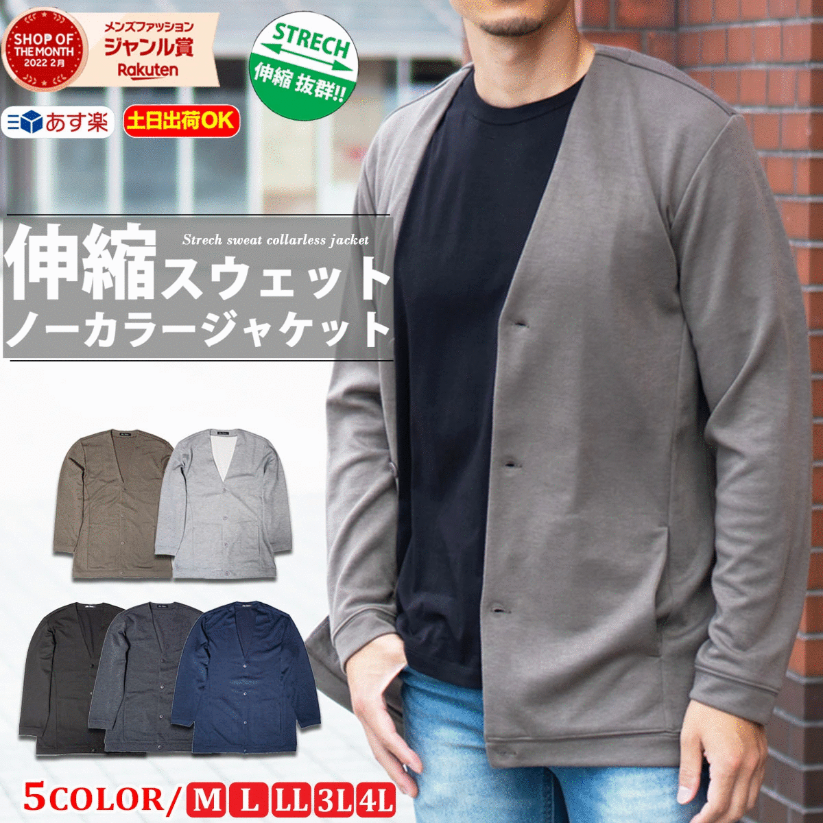 《秋NEW》新作 秋 スウェット ノーカラー ジャケット メンズ 長袖 ポンチ スリム カジュアル ジャケット 伸縮 ストレッチ カーディガン