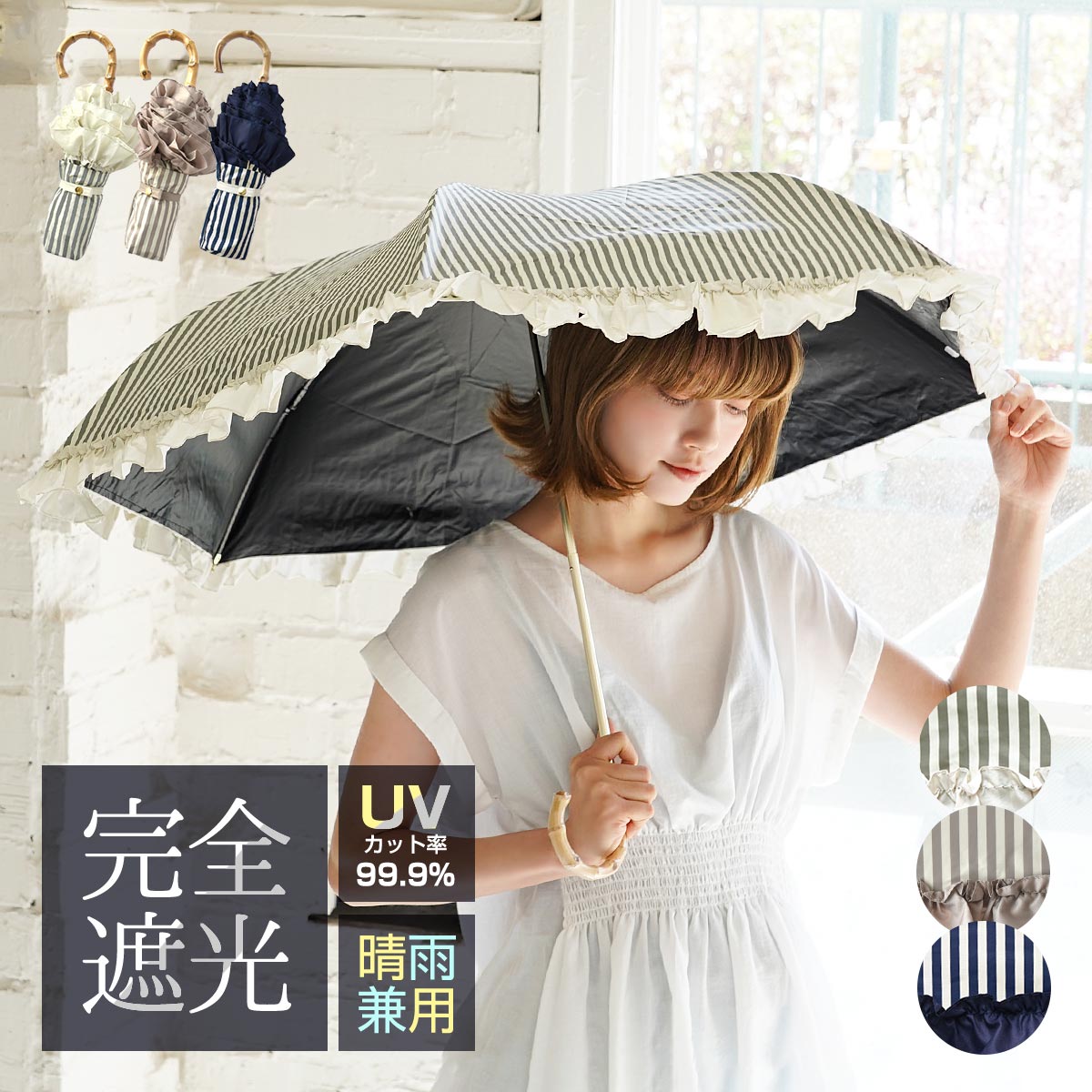 | 完全遮光 まるい3段 折りたたみ傘 【親骨50cm・フリルストライプ】 |