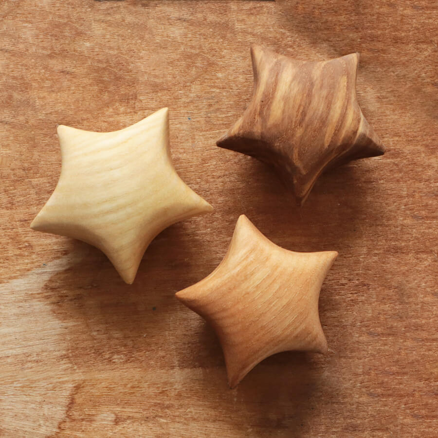 木のぬくもりを感じる、ふっくらまんまるの星のオーナメント。