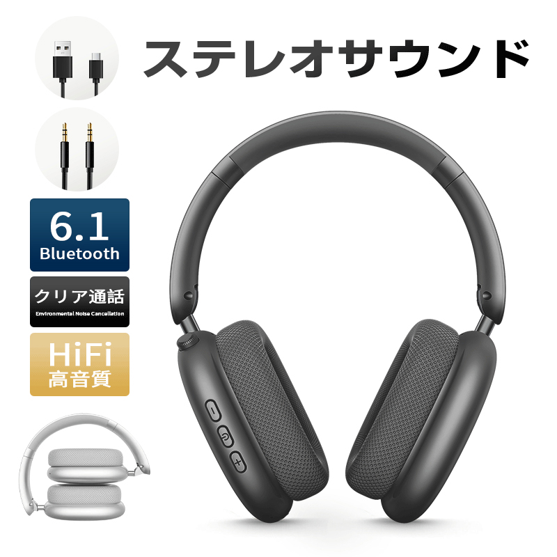 ワイヤレスヘッドホン Bluetooth6.1 低遅延 自動ペアリング マイク内蔵 ノイズキャンセリング HiFi高音質 オーディオケーブル付【PL保険加入済み製品・安心】