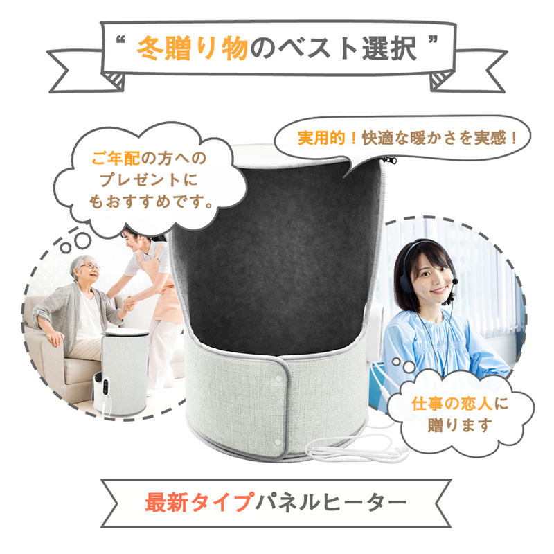 パネルヒーター ラウンド型 天面と床面付き 遠赤外線発熱 タイマー機能 3段階温度調整 デスクヒーター 足元 暖房 速暖 転倒オフ【PL保険加入済み製品・安心】