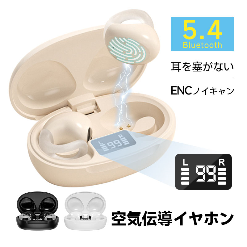 空気伝導 OWS&TWSイヤホン Bluetooth5.4 ヘッドセット 挟んで装着 イヤーカフ型 HiFi高音質 マイク内蔵 ENCノイズリダクション【PL保険加入済み製品・安心】