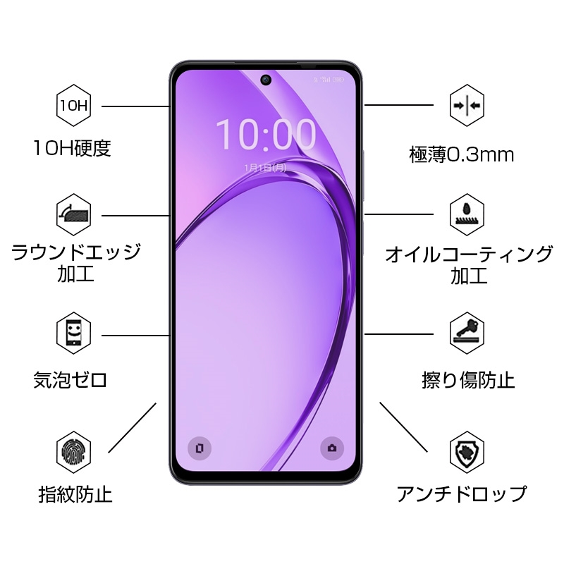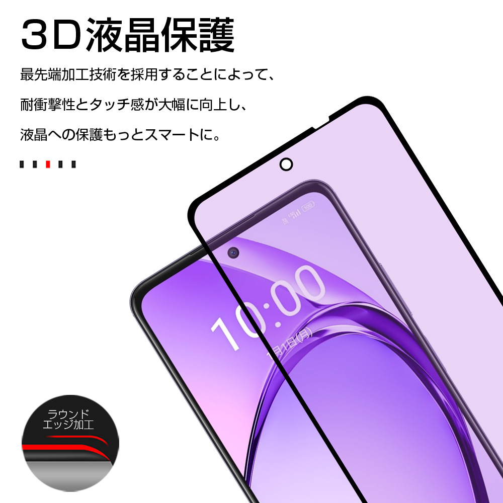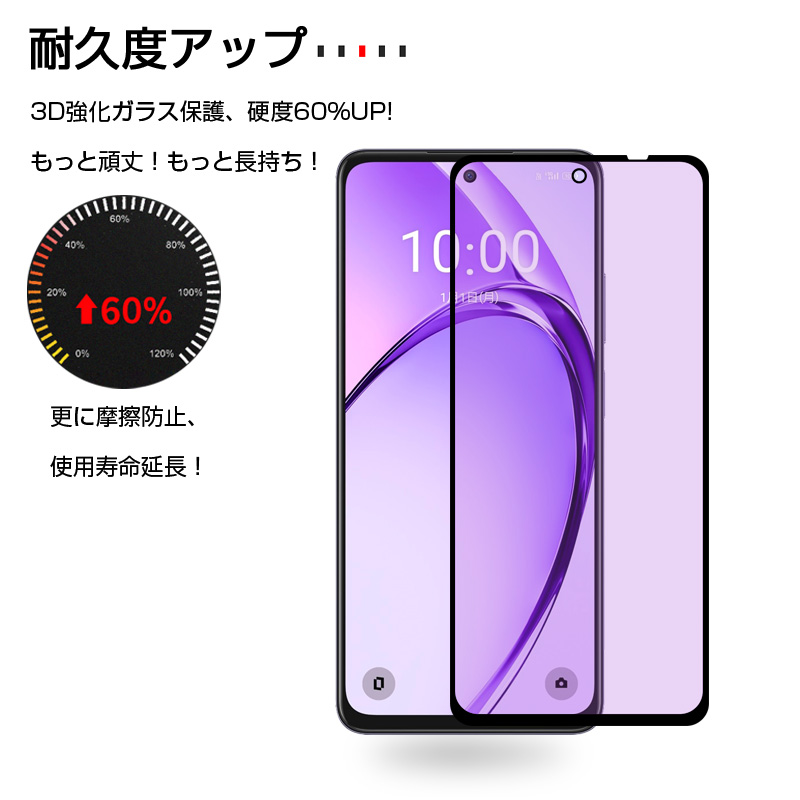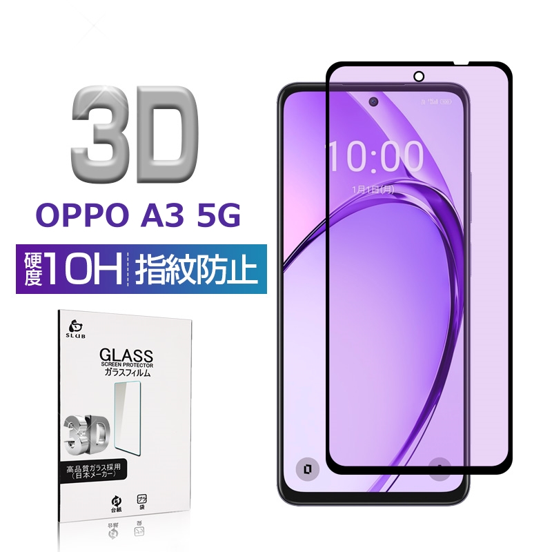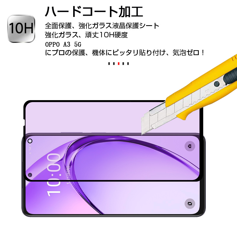 OPPO A3 5G ブルーライトカット 強化ガラスフィルム 3D全面保護 高透過率 ラウンドエッジ加工 0.3mm 超薄型 10H硬度 指紋軽減 簡単貼り付け 気泡レス 送料無料