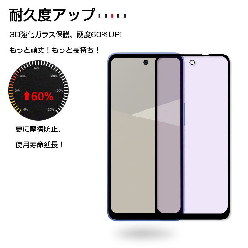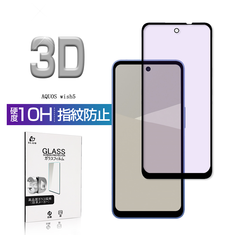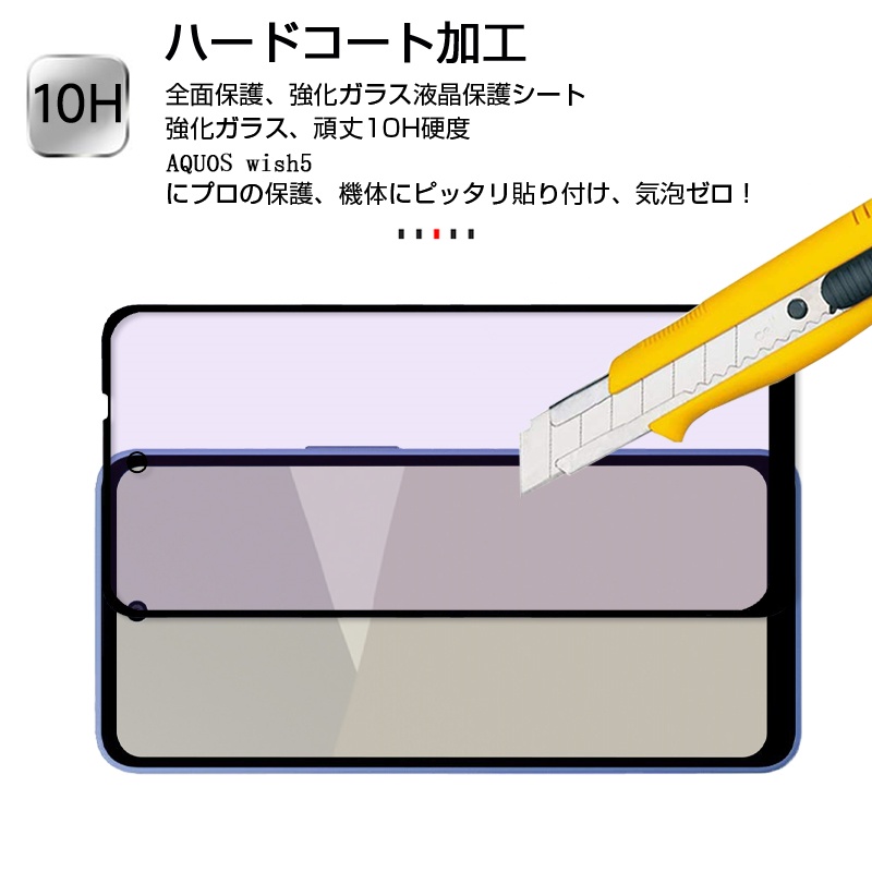 AQUOS wish5 ブルーライトカット仕様 強化ガラス保護フィルム アクオス SH-52F ラウンドエッジ加 工 指紋軽減 画面保護 割れ防止 高感度タッチ 撥水性 送料無料