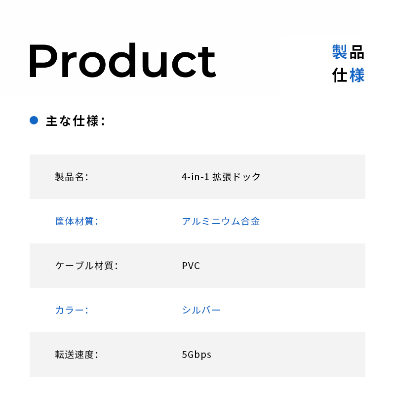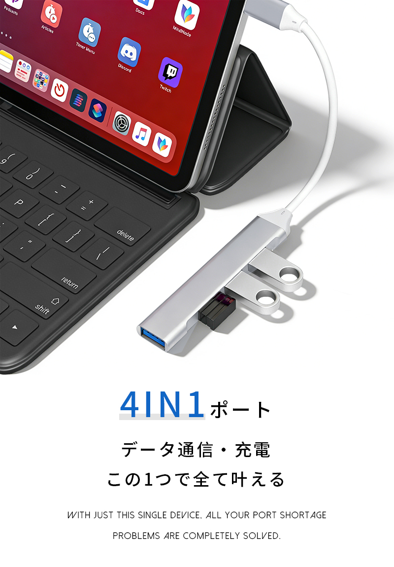この4-in-1 USB-C拡張ハブは、現代のミニマルで高性能なデジタルデバイスが求める「拡張性」と「携帯性」を両立。ポート不足の悩みを解消し、効率的でスマートなデジタルライフをサポートします。アルミニウムボディの洗練されたデザインは、どんな環境でも調和し、ユーザーのプロフェッショナルなイメージを損ないません。