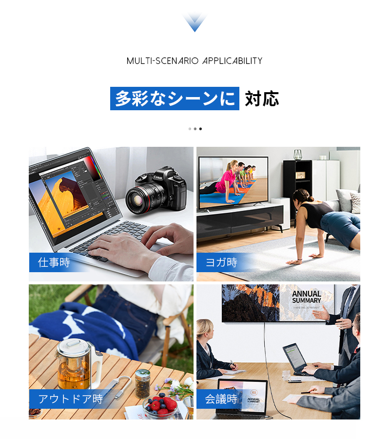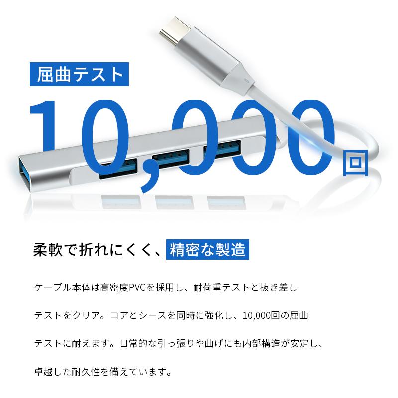 5.柔軟かつ堅牢なショートケーブル。短いから、デスク上で余計なケーブルの絡まりを生まず、スッキリと配置できます。