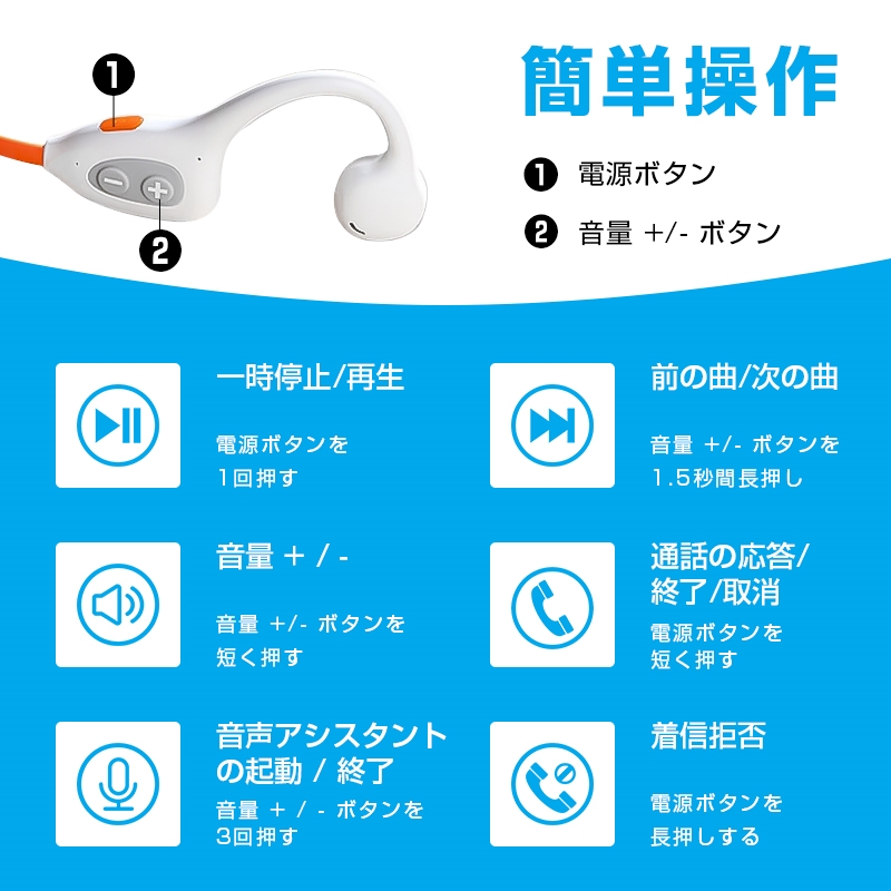 6.内蔵の160mAh大容量バッテリーにより、満充電後の連続再生・通話時間は最大16時間、待機時間は約30時間もあります。
