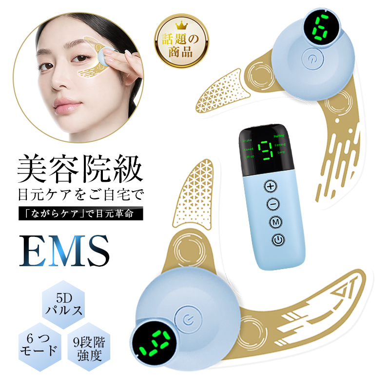 EMS美眼器 アイケア 左右ペア 美顔器 USB充電 6種モード 9段階強度 リフレッシュ 疲れ目 交換可能パッド メイク前 敏感肌対応 即納【PL保険加入済み製品・安心】