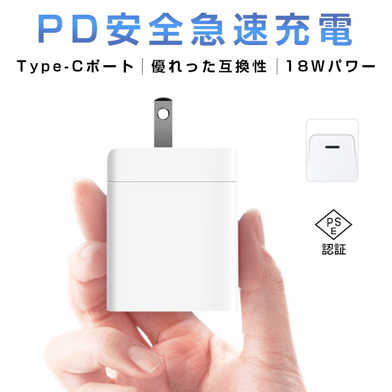 ACアダプター PD 急速充電器 折畳みプラグ iPhone 17/16充電対応 USB-C Type-C PD対応 急速充電 iPhone充電アダプター PSE認証済【PL保険加入済み製品・安心】