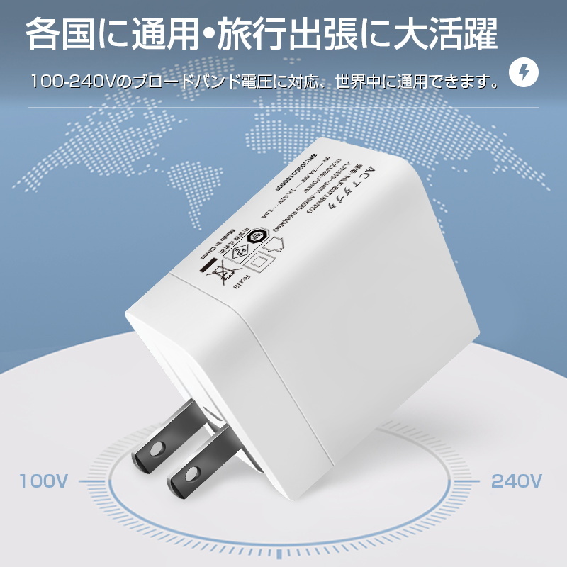 【100-240V入力電圧】グローバル規格に準拠し、AC100-240Vのブロードバンド電圧に対応できます。日本国内のみならず、海外でも変圧器を通すことなく使用できます。コンパクトで、海外への出張や旅行にもとても役立ちます。