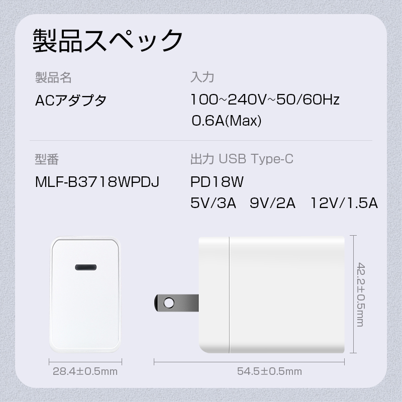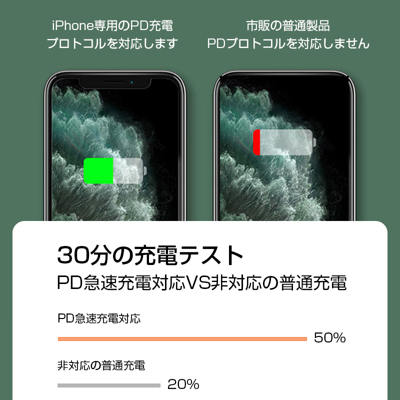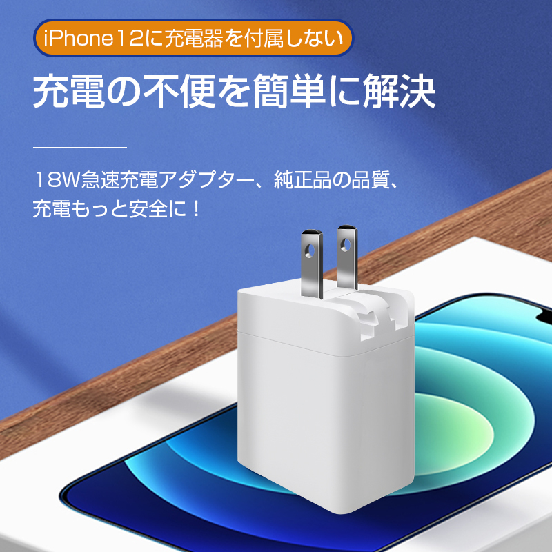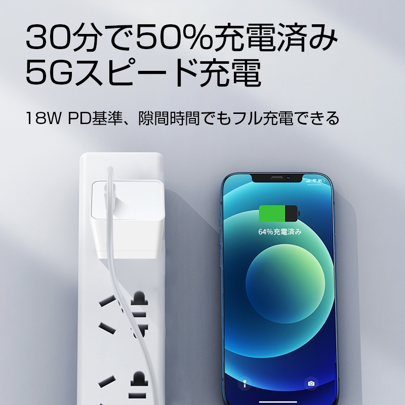 【急速充電】PD対応USB-Cポート搭載のアダプターです。18Wの出力に対応でき、PD対応できる機種に30分で約50%急速充電できます。iPhone13シリーズへの快速充電も最適です。USB-Cタイプの電源アダプターを持っていない場合は、本製品を買うと良いでしょう。