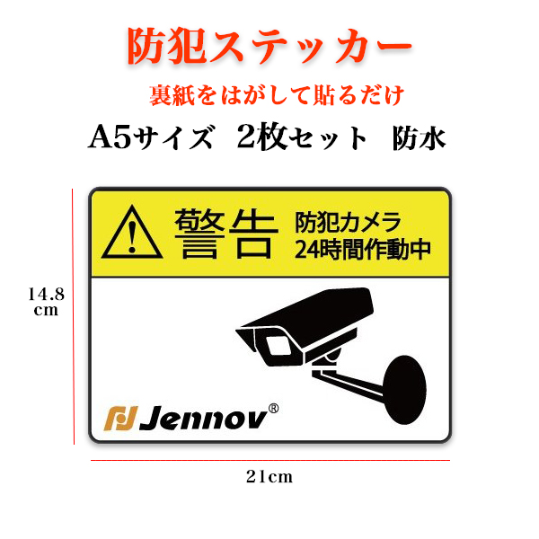 防犯カメラステッカー 防犯ステッカー 2枚セット 防水 警告ステッカー 防犯シール A5 14.8X21cm セキュリティーステッカー 24時間作動中 jennov anran