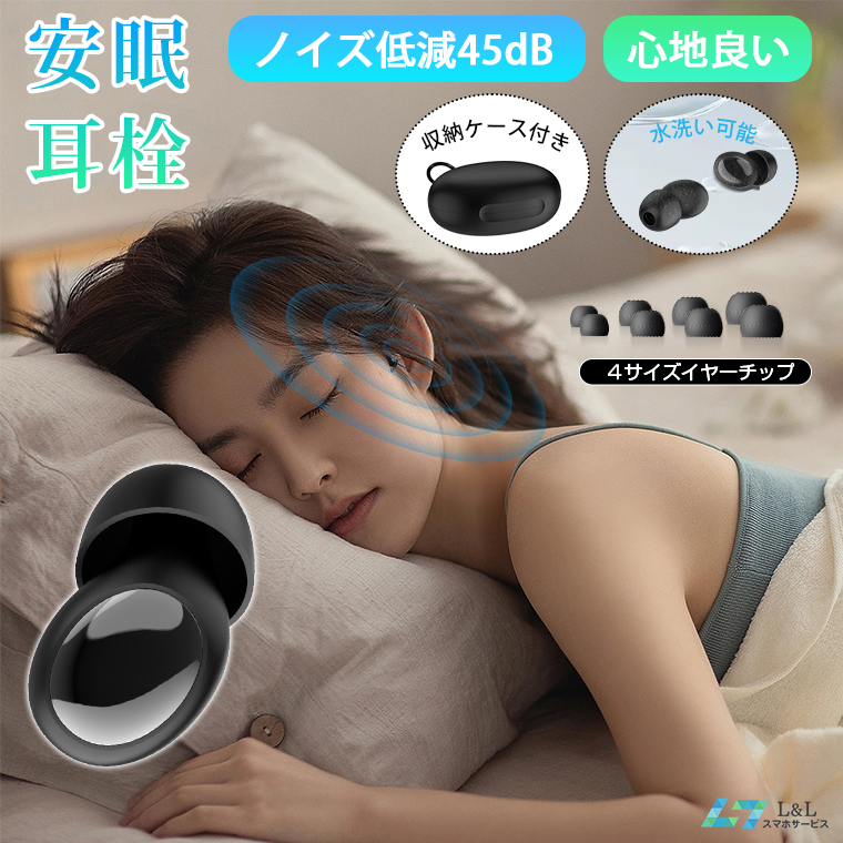 耳栓 睡眠用 ノイズキャンセリング耳栓 睡眠用耳栓 ノイズ低減45dB いびき対策 痛くない シリコン 水洗い可 遮音 防音 子供用 XS S M L ケース付き 騒音対策
