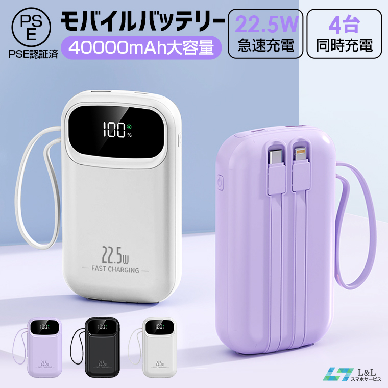 | ・バッテリー容量:40000mAh ・本体重量:322g ・サイズ:68×123×33mm ・フル充電時間:約6時間 ・素材:ABS ・残量表示:LEDパネル ・入力/出力ポート:USB-A、USB-C ・出力ケーブル:Type-C、Lightning 出力/入力: 出力 USBポート 5V/3A 9V/2A 12V/1.5A USB-Cポート 5V/3A 9V/2A 12V/1.65A Type-Cケーブル 5V/3A 9V/2A Lightningケーブル 5V/3A 9V/2A 入力 USBケーブル 5V/2A USB-Cポート 5V/3A 9V/2A 12V/1.65A 商品ポイント: 長時間使用可能 40000mAhの大容量バッテリーは、スマートフォンやタブレットなどのデバイスを複数回充電できるため、長時間の外出(観戦、お花見)や旅行中に便利です。 軽量で持ち運びが容易 322gという軽量な設計は、持ち運びや持ち運びの際に便利です。バッグやポケットに簡単に収納でき、外出先での使用に向いています。 多機種対応&4台同時充電 大容量のバッテリーは、さまざまなデバイスに対応することができるため、家族や友人とのシェアや緊急時の予備電源として活用できます。 Max22.5W 急速充電 22.5Wの高速充電スピードは、スマートフォンやタブレットなどのデバイスを迅速に充電することができます。朝10分など急いでいる時や急な充電が必要な場面で非常に便利です。 |