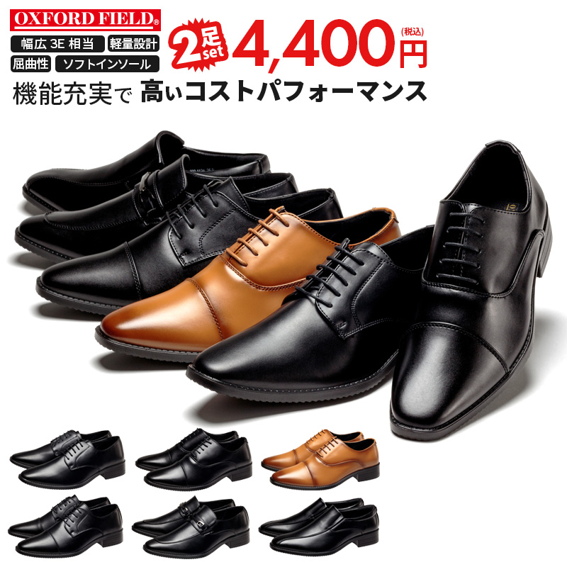 コスパ最強 ビジネスシューズ 2足セット 2足で4,400円税込 革靴 メンズ 軽量 ソフトインソール 幅広 3E相当 紳士靴 25cm-28cm 軽量 就活 合皮 ブラウン