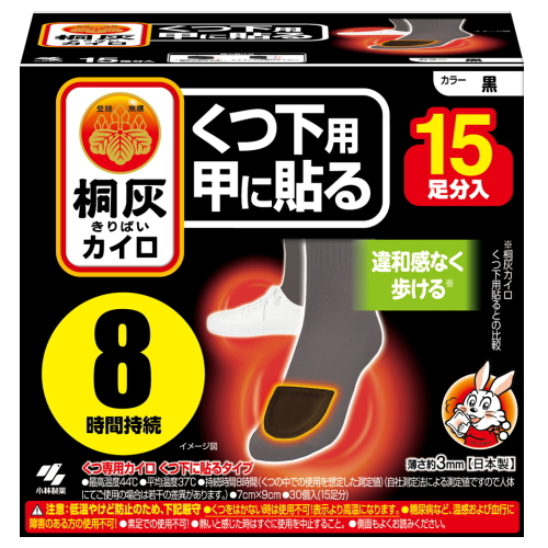 桐灰カイロ くつ下用 甲に貼る 黒 15足入り / 小林製薬