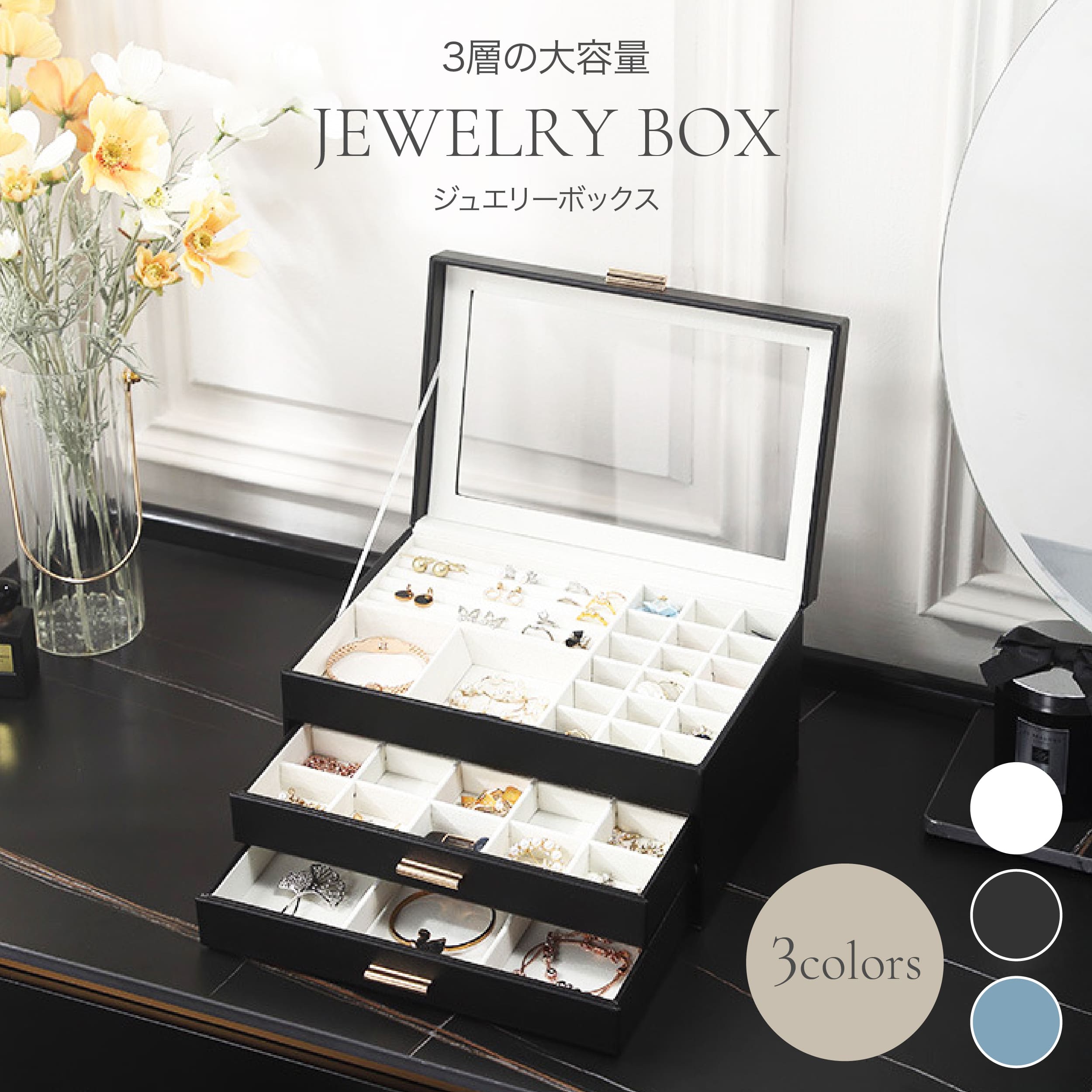 ジュエリーボックス 3段式 大容量 マグネット式 天窓付き アクセサリー収納 宝石箱 ピアス ネックレス イヤリング 仕切り付き リング 小物入れ 爆買