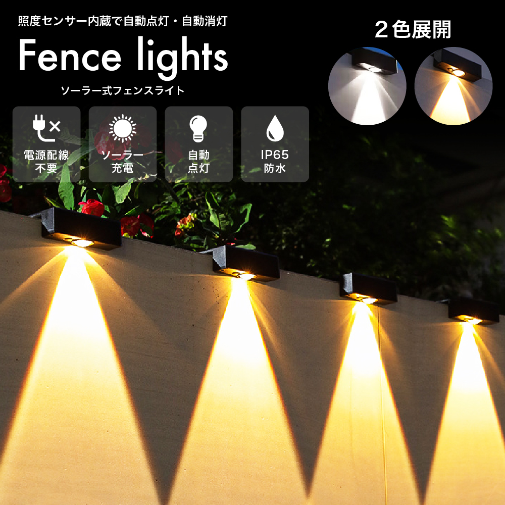 ソーラー式フェンスライト ガーデンライト デッキライト 太陽光発電 IP65防水 明暗センサー 屋外 自動点灯 照明器具 階段 庭 ベランダ ライトアップ おしゃれ