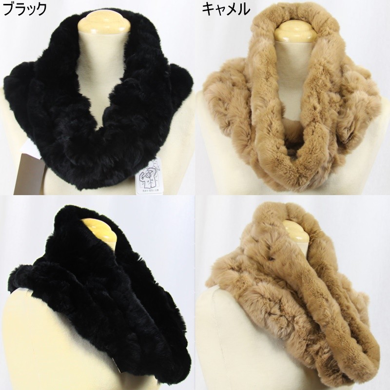 毛皮/レッキス ラビット スヌード フリル デザイン ネックウォーマー リアルファー レディース 大サイズ