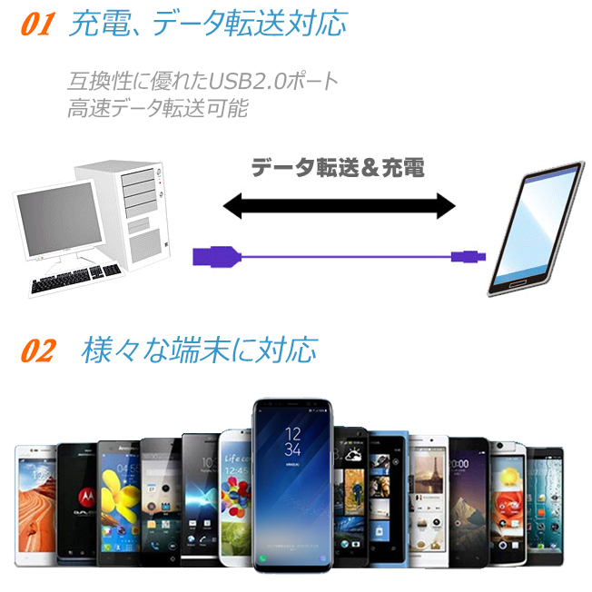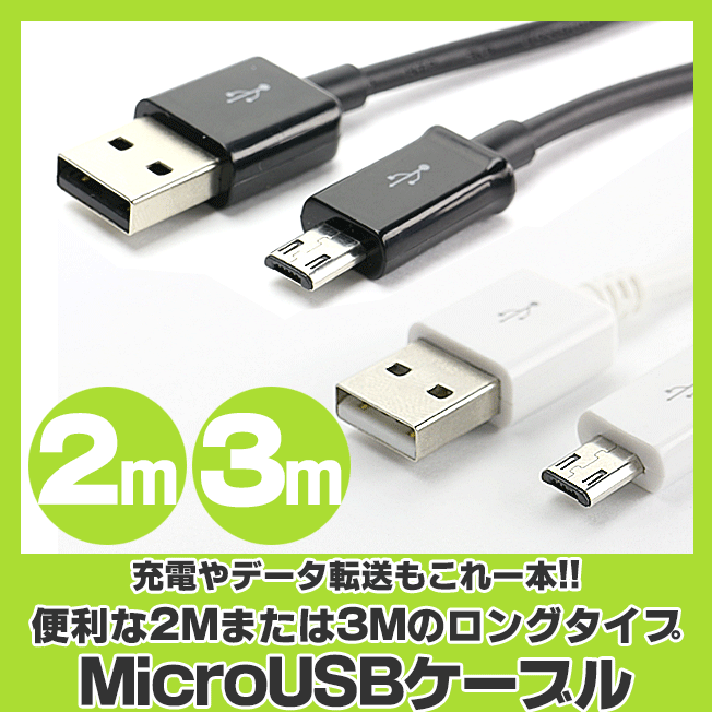 USBケーブル スマホ充電 マイクロUSBケーブル 2m 3m 定型外無料