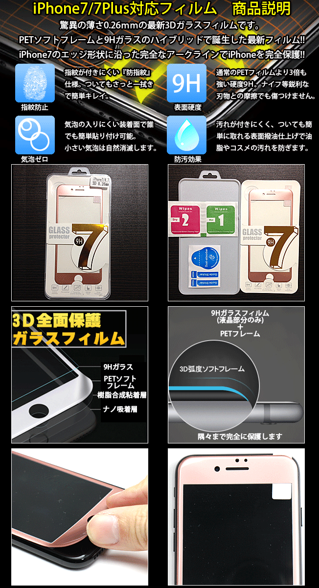 商品名: 3D PETソフトフレーム製強化ガラス保護フィルム 9H 0.2mmフルラウンド ガラスフィルム 強化ガラス 曲面保護 赤 レッド 黒 白 桃