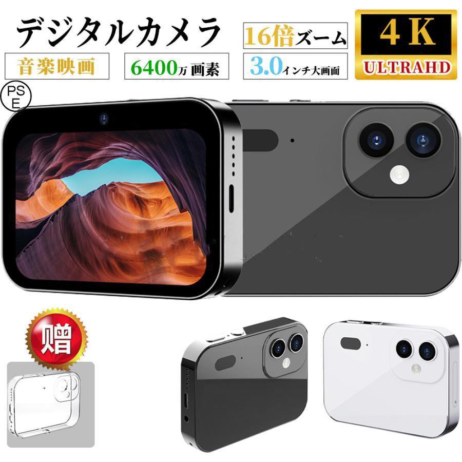 デジタルカメラ 4K カメラ 6400万画素 スリーショット 広角レンズ 望遠レンズ オートフォーカス 3inch タッチスクリーン 音楽再生 MP3 MP4 録音 2025 新品