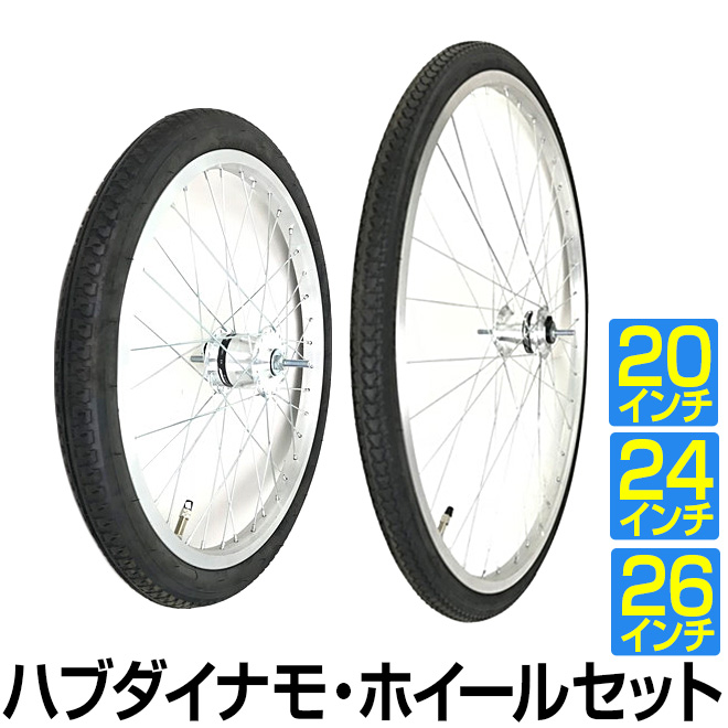 自転車 前輪 タイヤ ホイール セット 20 24 26インチ ハブダイナモ E2端子 完組み フロントホイール 自転車 フロントホイール ママチャリ 軽快車 シティサイクル 折りたたみ自転車 小径車 ミニベロ クロスバイク