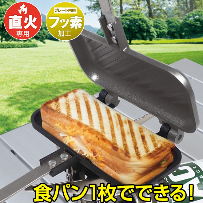 ホットサンドメーカー 直火 耳まで 食パン 1枚用 着脱式 ホットサンド フライパン コンパクト キャンプ 調理器具 新生活 バーベキュー キャンプ用品 ソロキャンプ 朝食 パーティー海 海水浴 プール 山 川 公園 送料無料