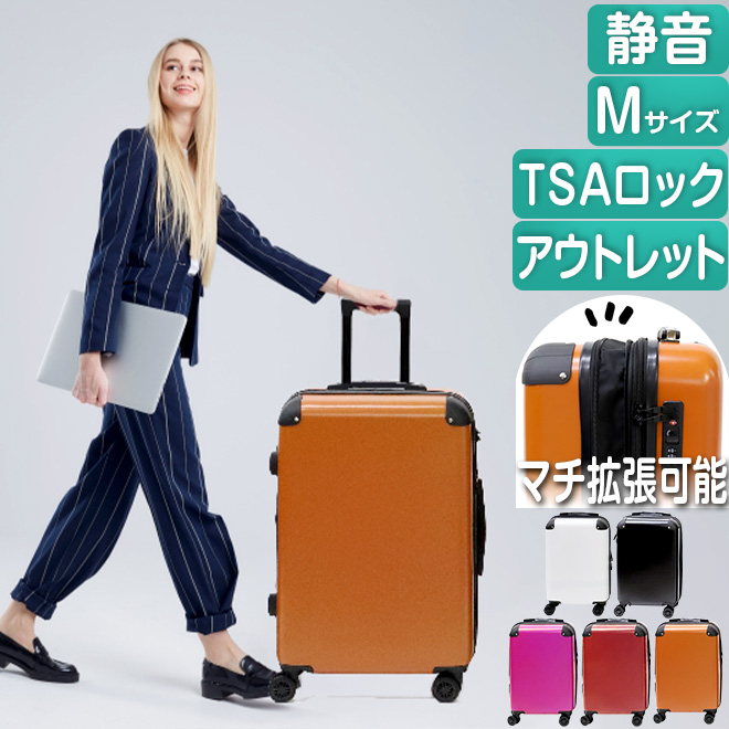 アウトレット \今だけキャリーベルト付/ キャリーケース 容量拡張 静音 TSAロック 旅行 M 修学旅行 スーツケース キャリーバッグ