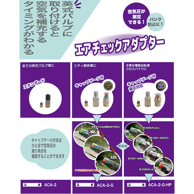 ACA-2-Gはキャップゲージが付いており、空気圧の減少によって緑→黄→赤と色が変化し、